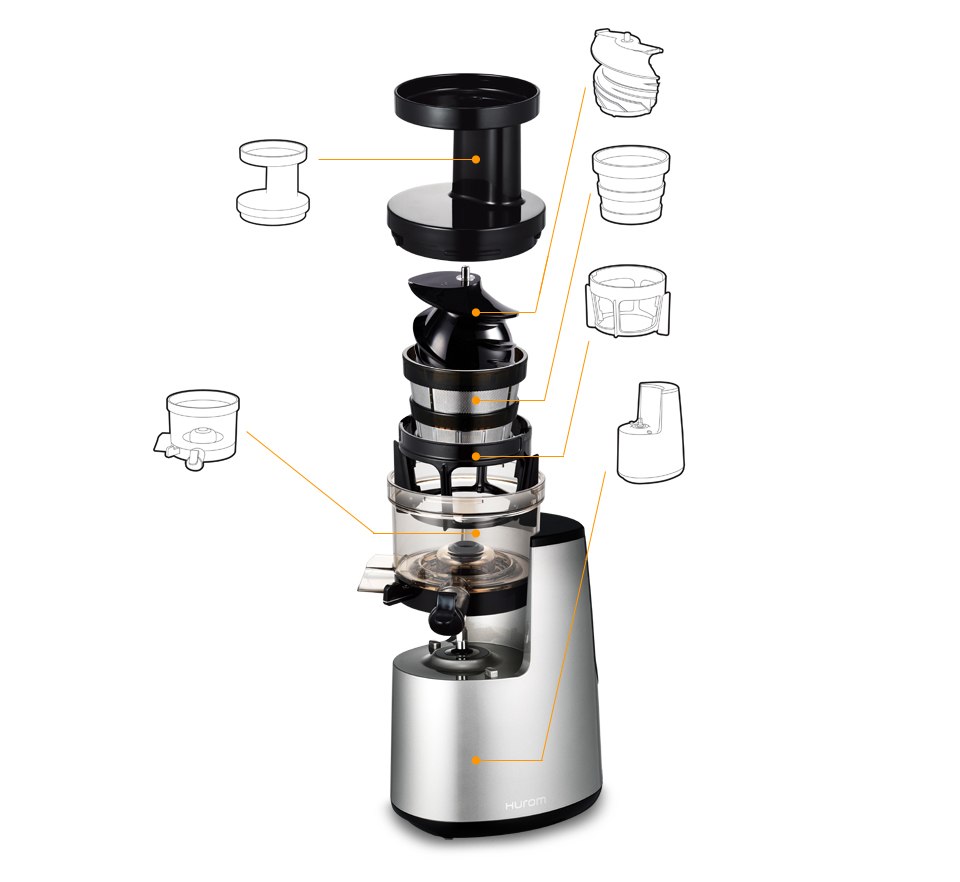 Efektīvi izstrādāta ventilācijas sistēma un viegli transportējams dizains ļauj Hurom sulu spiedi viegli lietot jebkurā laikā un vietā.